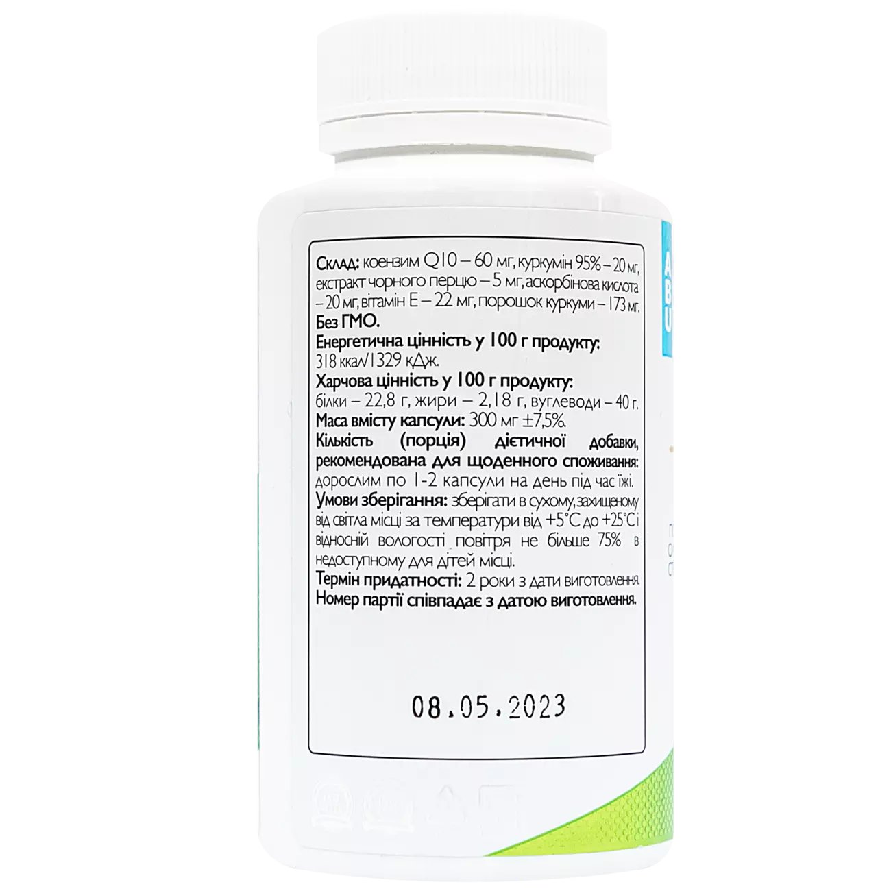 Коензим Q10 – 60 мг, куркумін 95% – 20 мг, екстракт