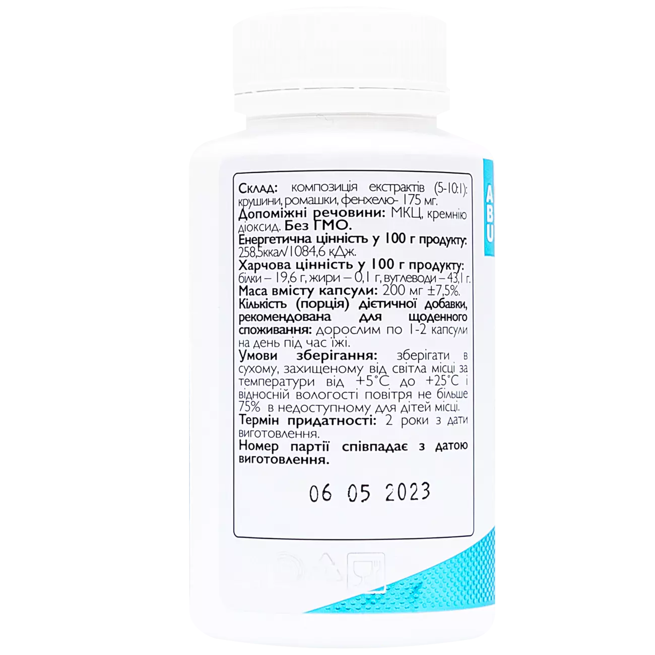 Комплекс для кишечника з крушиною, ромашкою та фенхелем Cascara ABU, 60 капсул