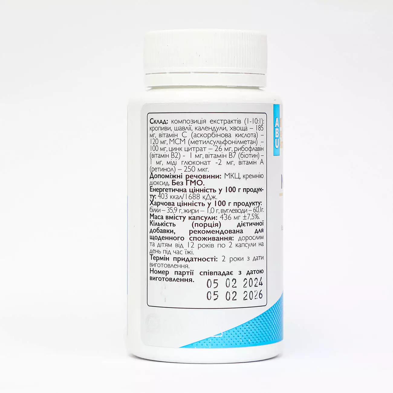 185 мг, вітамін С (аскорбинова кислота) – 120 мг, МСМ