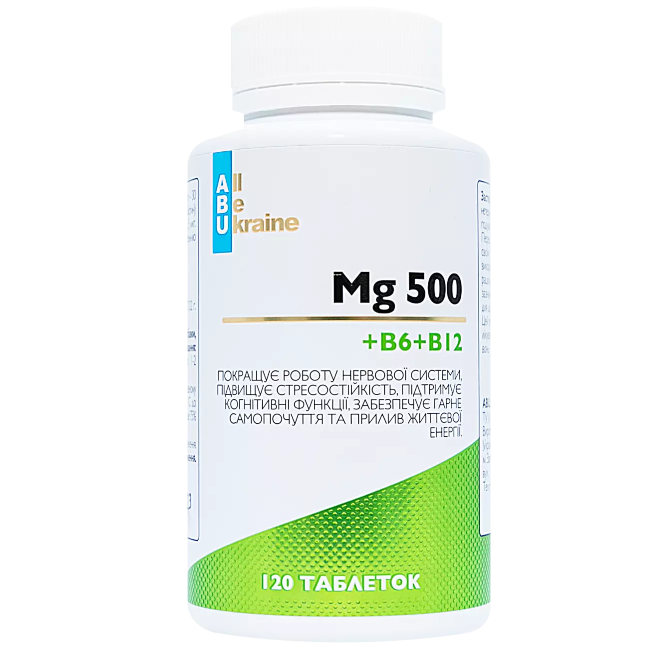 Магній 500 Mg+B6+B12 ABU, 120 таблеток